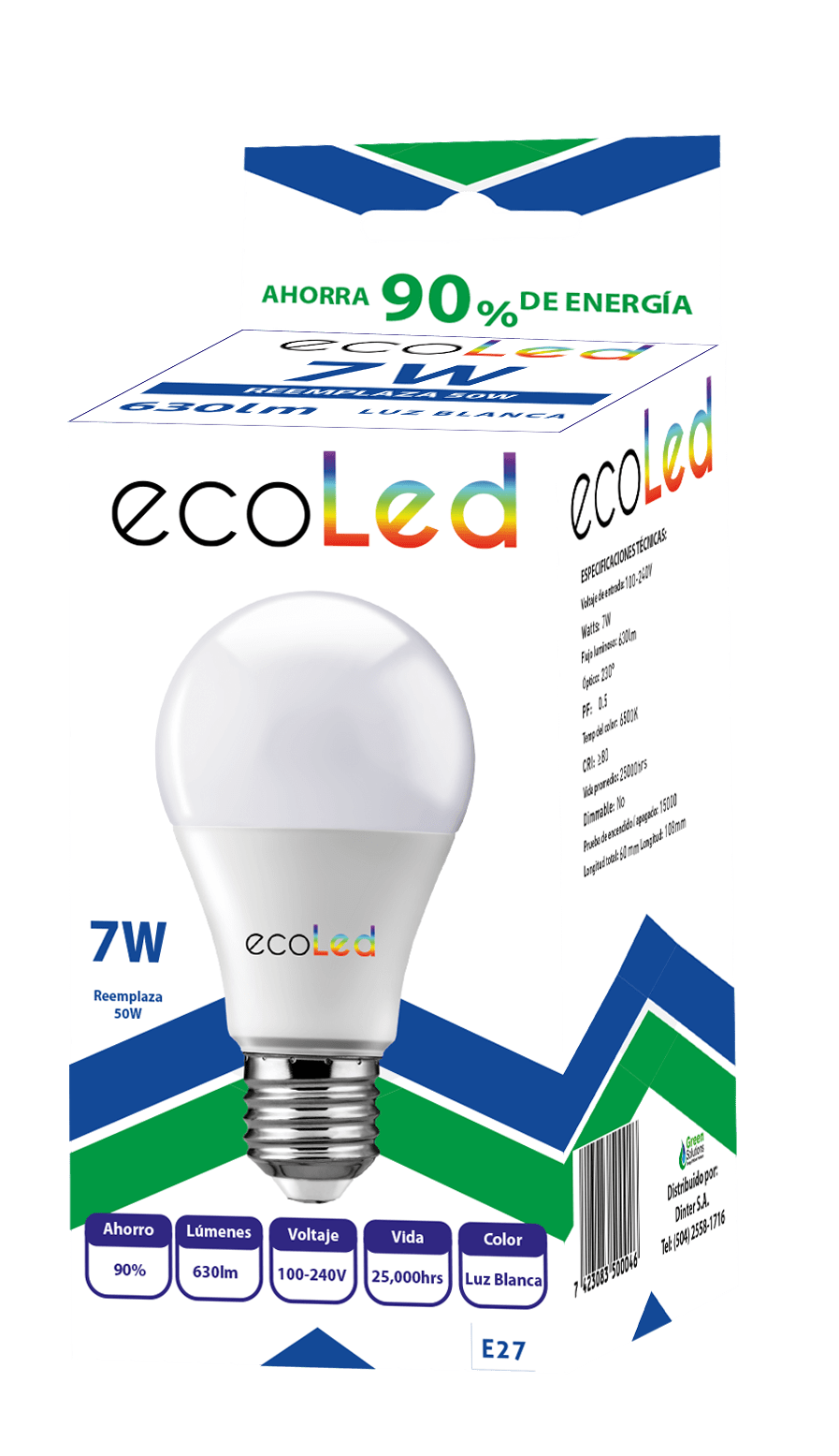 BOMBILLO ECOLED 7W 120V 6500K NO DIM 630LM 25,000 HRS 100XCAJA